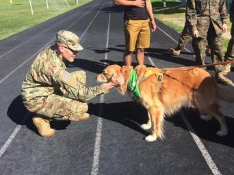 Keywords: presidio pom public_affairs publicaffairs monterey dli dliflc defense_language defenselanguage foreign_language foreignlanguage military language foreign defense community community_relations communityrelations california ca calif dod joint education school ready resilient ready_and_resilient readyandresilient resiliency 229th military_intellegence militaryintellegence intelligence foxtrot f_co fco family_readiness familyreadiness frg family readiness dog dogs mascot lingo humane humane_society humanesociety monterey_county montereycounty spca usa outdoor Foxtrot Company, 229th Military Intelligence Bn., brought the SPCA of Monterey County "Hug a Pet" team and a hot dog lunch to Defense Language Institute Foreign Language Center students and staff at the to Presidio of Monterey's Hilltop Track Nov. 9, 2016. Three dogs adopted from the shelter, two certified therapy dogs, and Pfc. Lingo - the school's mascot - spread "puppy love" to raise morale for service members, many of whom live in the barracks where they are not allowed to care for pets while completing military language training at the school. DoD photo by Catherine Caruso, Presidio of Monterey Public Affairs. Foxtrot Company, 229th Military Intelligence Bn., brought the SPCA of Monterey County "Hug a Pet" team and a hot dog lunch to Defense Language Institute Foreign Language Center students and staff at the to Presidio of Monterey's Hilltop Track Nov. 9, 2016. Three dogs adopted from the shelter, two certified therapy dogs, and Pfc. Lingo - the school's mascot - spread "puppy love" to raise morale for service members, many of whom live in the barracks where they are not allowed to care for pets while completing military language training at the school. DoD photo by Catherine Caruso, Presidio of Monterey Public Affairs.