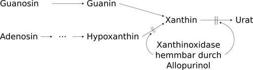 Keywords: Purinstoffwechsel.svg Zwischenprodukte im Purinstoffwechsel 2010-02-02 own assumed WhiteTimberwolf Gout