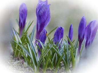 Keywords: purple crocus blossom flower nature spring garden plant flora macro violet close-up blooms white vignette