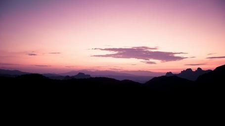 Keywords: purple sky mountain range silhouettes peaks color twilight dusk sunset evening view nature