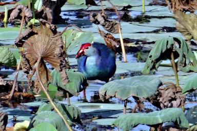 Keywords: purple swamphen porphyrio porphyrio purple moorhen swamp hen rail rallidae lotus pond karnataka india