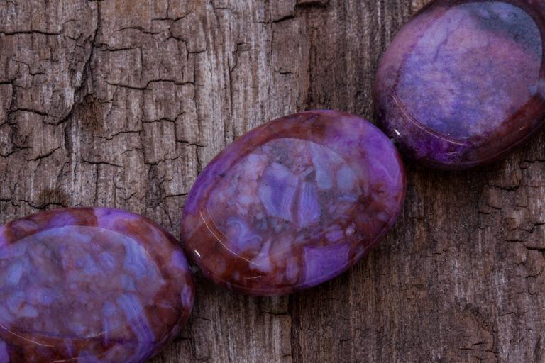 Keywords: purpurit mineral scaffolding silicate purple pink white gem stone tumbled smooth crystal structure linsenförmig jewellery