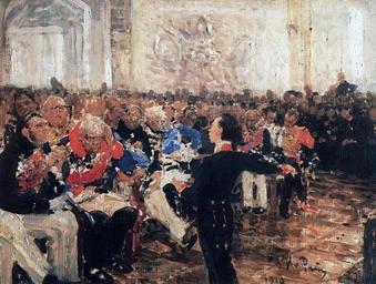 | Keywords: Pushkin derzhavin (etude).JPG Александ Се геевич Пушкин читает свою поэму пе ед Гав иилом Де жавиным на лицейском экзамене в Ца ском Селе 8 янва я 1815 года http //en gallerix ru/album/Repin/pic/glrx-802383422 191o Creator Ilja Jefimowitsch Repin PD-old-auto 1930 Aleksandr Pushkin in art Gavrila Romanovich Derzhavin Historical paintings of Tsarskoe Selo Lyceum in Tsarskoe Selo History paintings by Ilya Yefimovich Repin Files uploaded by Shakko from various sources | ||||
