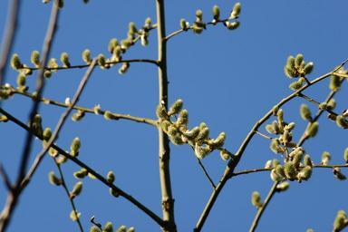 Keywords: pussy willow salix catkins goat willow willows tree branch flower pollen blue sky close-up detail spring full flower fur