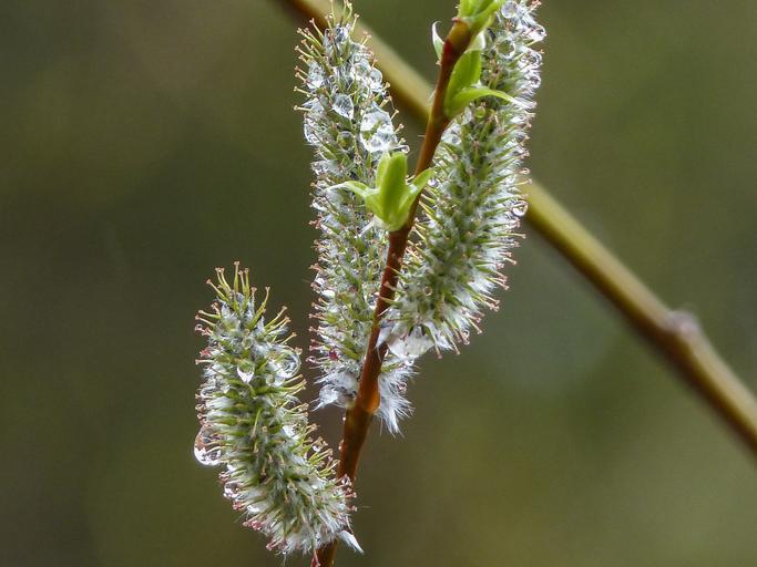 Keywords: pussy willows palmkaetzchen bush branch nature forest rain drops wild season spring time macro close-up meadow