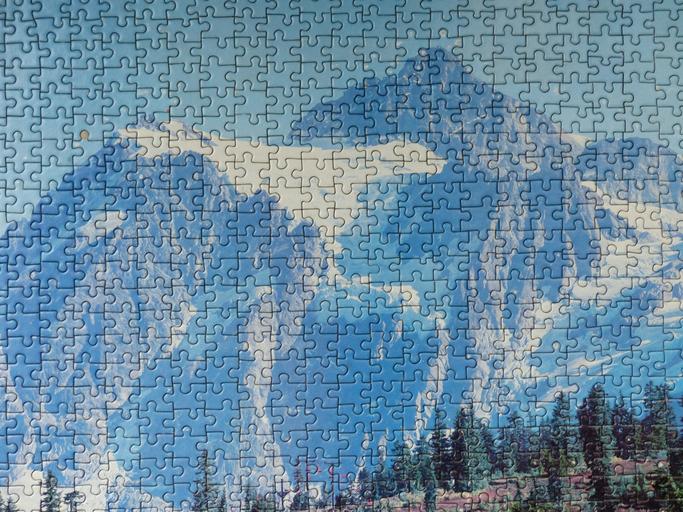Keywords: puzzle play share piecing together pieces of the puzzle motif mountain