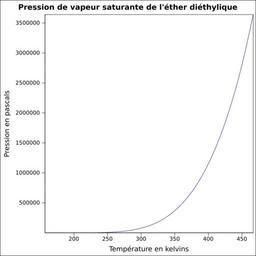 | Keywords: Pvs éther diéthylique.svg fr Pression de vapeur saturante calculée d'après <br/> Robert H Perry et Donald W Green Perry's Chemical Engineers' Handbook McGraw-Hill USA 1997 7e éd 2400 p ISBN 0-07-049841-5 p 2-50 own Epop 2010-06-24 Created with Gnumeric Vapor-Liquid equilibrium curves |