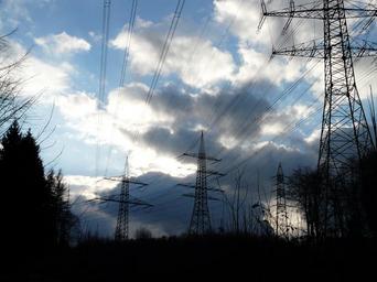 Keywords: pylons power poles electricity energy clouds sky voltage