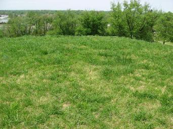 | Keywords: Pyramid Mound summit.jpg 38 40 14 N 87 30 24 W Grass on the top of w Pyramid Mound located off Wabash Avenue in Vincennes Indiana Vincennes Indiana United States Once thought to have been a Mound builder people Native American mound it is now known to be a natural hill used for burial purposes It is an archaeological site and as such it is listed on the National Register of Historic Places own 2011-04-30 User Nyttend Nyttend Pyramid Mound Building-centered pictures by User Nyttend Taken with Canon PowerShot A540 |