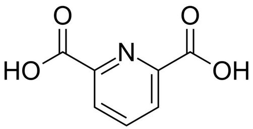 | Keywords: Pyridine-2,6-dicarboxylic acid 200.svg validSVG Structure of pyridine-2 6-dicarboxylic acid Struktur von Pyridin-2 6-dicarbonsäure Own 2014-04-19 Emeldir <span class signature-talk >talk</span> Chemical structure verified https //upload wikimedia org/wikipedia/commons/5/5a/Pyridine-2 2C6-dicarboxylic_acid_200 svg 1S/C7H5NO4/c9-6 10 4-2-1-3-5 8-4 7 11 12/h1-3H H 9 10 H 11 12 WJJMNDUMQPNECX-UHFFFAOYSA-N 499-83-2 Synonyms <small>2 6-Dicarboxypyridine 2 6-Dipicolinic acid 2 6-PYDA 2 6-Pyridine dicarboxylic acid 2 6-Pyridinedicarboxylic acid 2 6-Pyridinedicarboxylic acid 8CI9CI Dipicolinate Dipicolinic acid Dipicolinic acid solution DPA DPAc Pyridine-2 6-dicarbonic acid pyridine-2 6-dicarboxylic acid Pyridine-2 6-dicarboxylic acid sodium 6-carboxypyridine-2-carboxylate</small> PD-chem Pyridine acids Dicarboxylic acids |
