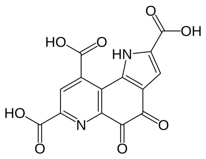 Keywords: Pyrroloquinoline quinone.svg Skeletal formula of pyrroloquinoline quinone PQQ cofactor Created using http //www acdlabs com/download/chemsk html ACD/ChemSketch 10 0 and Inkscape Own 2007-05-27 Fvasconcellos 21 57 27 May 2007 UTC Carboxylic acids Cofactors Ketones Nitrogen heterocycles |