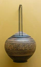 | Keywords: Pyxis with lid Agora Museum Athens.jpg pyxis with lid early geometric period from the cremation burial of a woman 900 BCE Athens Greece Pyxide suspendu à couvercle période géométrique ancienne d'une tombe de femme 900 av J -C Athènes Grèce institution Ancient Agora Museum 2015-10-26 own Jebulon other versions <gallery> File AGMA Pyxis with Lid jpg </gallery> cc-zero QualityImage Yellow background Ancient Greek pottery pyxides Ancient Greek Geometric pottery in the Ancient Agora Museum Athens 9th-century BC pottery in Greece 9th-century BC art in Athens Quality images of Athens Quality images by Jebulon |