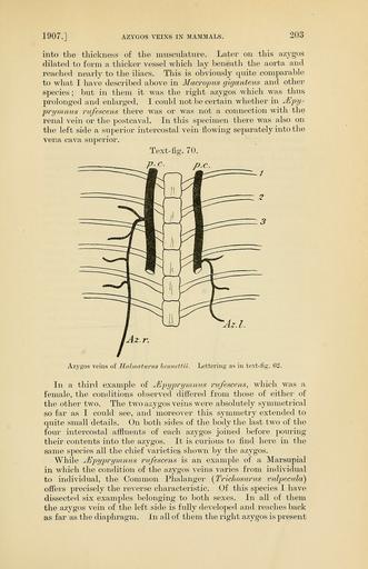Keywords: PZSL1907Page203.png Halmaturus bennettii <small></small> Macropus rufogriseus rufogriseus <small> Desmarest 1817 </small> en Parietal veins of Bennett's Wallaby from ventral 1/2/3 first ribs Az l hemiazygos vein Az r azygos vein p c superior vena cava Proceedings of the Zoological Society of London http //archive org/details/proceedingsofzoo19071446zool vol 1907 issue 1 http //archive org/stream/proceedingsofzoo19071446zool page/203/mode/1up page 203 1907 F E Beddard text PD-old PZSL 1907-1 Macropus rufogriseus anatomy Mammal circulatory system Veins |