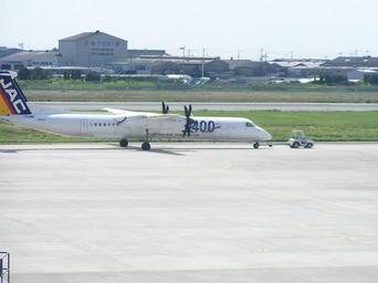 Keywords: Q400 towing1.jpg Bombardier Dash8-Q400 JA842C at RJOM Matsuyama Airport Towings Spot1 to Spot7 2006-09-17 own assumed N C De Havilland Canada DHC-8-400 at Matsuyama Airport JA842C aircraft Japan Air Commuter aircraft at Matsuyama Airport