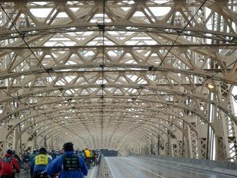 Keywords: QBB pinacle 5BBT jeh.JPG en Looking east along the top level of w Queensboro Bridge during a rainy en Five Boro Bike Tour own Jim henderson 2009-05-03 40 45 28 2 N 73 57 24 W heading ESE Queensboro Bridge Five Boro Bike Tour