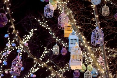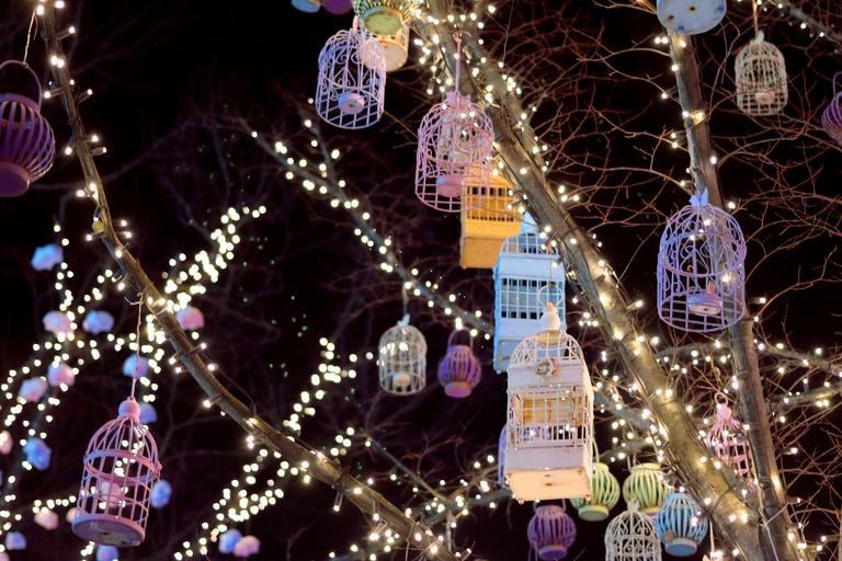 Keywords: qingdao provence lights outdoors light bird cage art design night wood street lightning