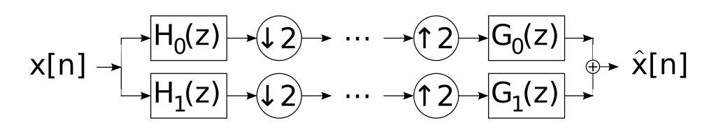 Keywords: QMF.svg cs banka kvadraturně zrcadlových filtrů QMF en quadrature mirror filter QMF bank Own DaBler 2009-01-01 created with Inkscape Signal processing Wavelets