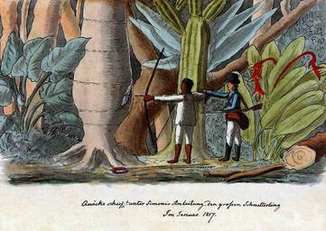 | Keywords: Quäck schießt den großen Schmetterling.jpg Botokude-Indianer Joachim Quäck Quäck portugiesisch Kuêk ursprünglich Nuguäck vermutlich um 1800 im brasilianischen Bundesstaat Minas Gerais in Brasilien; 1 Juni 1834 in Neuwied traf 1817 als Minderjähriger den deutschen Entdecker Ethnologen Zoologen und Naturforscher Prinz Maximilian zu Wied-Neuwied in Brasilien Quäck wurde für Maximilian zum einheimischen Reisebegleiter der ihm das für seine Forschungen notwendige Hintergrundwissen vermittelte Dieses Aquarell von Maximilian das er im Januar 1817 malte zeigt Quäck mit Pfeil und Bogen bei der Jagd auf große Schmetterlinge Quäck befindet sich in der Gesellschaft des bewaffneten Gärtners Christian Simonis vom Schloß Neuwied und auf Weisung von Maximilian verwendet Quäck bei seiner Schmetterlingsjagd einen stumpfen Pfeil damit er die Schmetterlinge nur betäubt und nicht zerstört Maximilian beschrieb diese Schmetterlingsjagd in seinem Werk Reise nach Brasilien in den Jahren 1815 bis 1817 veröffentlicht im Verlag Heinrich Ludwig Brönner Frankfurt 1820 “1821 Band 2 Seite 130-131 Dort betont Maximilian dass Quäck sich in dieser sonderbaren Art der Jagd eine große Fertigkeit erworben habe Maximilian ließ Quäck ein Jahr später nach Europa nachkommen Am 12 Februar 1818 kam Quäck in Neuwied an Dort arbeitete er für Maximilian als dessen persönlicher Kammerdiener Quäck verstarb im Alter von 34 Jahren am 1 Juni 1834 um 9 Uhr morgens an einer Leberentzündung und wurde am 3 Juni 1834 vermutlich auf dem Alten Friedhof von Neuwied katholisch beerdigt Aquarell und Feder vom Januar 1817 Das Aquarell ist 13 5 x 24 6 cm groß Datiert unten Quäcke schieszt unter Simonis Anleitung den grossen Schmetterling Im Januar 1817 Abbildung in dem Werk Brasilien-Bibliothek der Robert-Bosch-GmbH Katalog Band II Nachlaß des Prinzen Maximilian zu Wied-Neuwied Teil 1 Illustrationen zur Reise 1815 bis 1817 in Brasilien Bearb von Renate Löschner Deutsche Verlags-Anstalt Stuttgart ISBN 3-421-02938-5 Das Bild findet sich unter Katalog Nr 135 auf Seite 132 Maximilian zu Wied-Neuwied 1817-01 PD-old-100 PD-old Maximilian zu Wied-Neuwied Joachim Quäck |