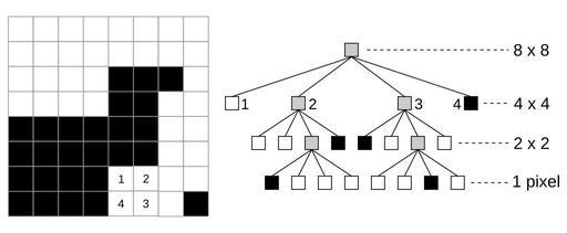 | Keywords: Quad tree bitmap.svg en Bitmap 8x8 pixels repsented with compressed quadtree Number denotes order of nodes pl Bitmapa 8x8 pikseli reprezentowana przez skompresowane drzewo czwórkowe Liczby określają kolejność węzłów w drzewie own Wojciech Muła 2008-09-28 drawn using inkscape Tree structures Image compression Bitmap Quadtrees |