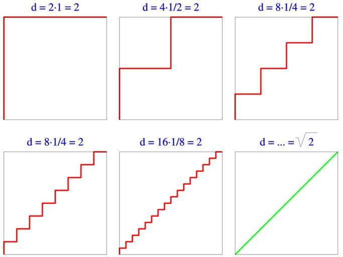 Keywords: Quadrat Diagonale.svg Limes of diagonal approximation used to illustrate a question in the German Wikipedia own 2008-04-25 RokerHRO Length analysis
