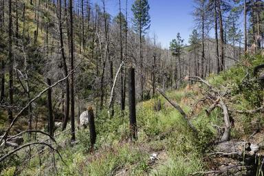 | Keywords: West side of the Black Range, south-southwest of McKnight Peak in Quaking Aspen Canyon above Aspen Spring, 32.96884 -107.87919, Grant County, New Mexico, 18 Sep 2016. Recently burned ponderosa pine forest, with <i>Ageratina rothrockii, Amauriopsis dissecta, Brickellia grandiflora, Cirsium wheeleri, Conyza canadensis, Erigeron neomexicanus, Heliomeris multiflora, Laënnecia schiedeana, Packera neomexicana, Pseudognaphalium, Cerastium fastigiatum, Robinia neomexicana, Vicia pulchella, Quercus gambelii, Geranium caespitosum, Agastache pallidiflora, Pinus ponderosa, Penstemon barbatus, Bromus ciliatus, Muhlenbergia rigens, Ceanothus fendleri, Rubus idaeus, Houstonia wrightii, Populus tremuloides, Verbascum thapsus,</i> etc. |