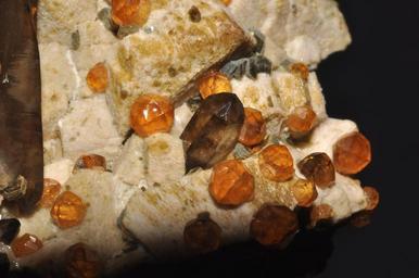 Keywords: Quartz fumé, grenats, orthose, muscovite 1 (Chine).jpg fr spessartines sur quartz et orthose avec mica muscovite own Parent Géry 15/02/10 Spessartine Smoky quartz Orthoclase Muscovite Taken with Nikon D90