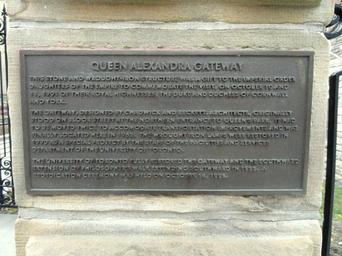Keywords: Queen Alexandra Gateway - Toronto, Canada - DSC09866.JPG Queen Alexandra Gateway at the north end of the Philosopher's Walk Toronto Ontario Canada Daderot 2011-11-21 10 45 15 Daderot cc0 cc0 Queen Alexandra Gateway Plaques in Toronto