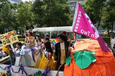 | Keywords: Queen Two cosplayers on TunHwa S Rd Taiwan Pride 2005.jpg en Queen Two cosplayers on Tun Hwa South Road on Taiwan Pride 2005 Cosplayers dressed as prince and princess were on a pumpkin truck Tun Hwa South Road Taipei city Taiwan zh-tw 參加2005年台灣同志遊行的女同志幸福聯盟 遊行 扮演 南 卡車 上的公主與王子 台灣台北市敦化南路 own 2005-10-01 14 26 User Atinncnu Public Domain Taiwan Pride 2005 People with flags Women called queens in the United States Pumpkin Queens Dunhua South Road | ||||