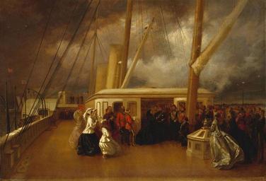 | Keywords: Queen Victoria and Sultan Abdülaziz.jpg Artwork Creator George Housman Thomas en Victoria Queen of the United Kingdom of Great Britain and Ireland and Abdulaziz emperor of the Ottoman Empire on the Royal yacht during the Sultan's official visit tr Büyük Britanya ve İrlanda Birleşik Krallığı Kraliçesi Victoria ve resmî ziyaret kapsamında orada bulunan Osmanlı Sultanı Abdullaziz kraliyet yatındalar fr La reine Victoria du Royaume-Uni de Grande-Bretagne et d'Irlande et Abdulaziz empereur de l'Empire ottoman sur le yacht royal pendant la visite officielle du Sultan es Victoria Reina del Reino Unido de Gran Bretaña e Irlanda y Abdulaziz emperador del Imperio Otomano en el yate real durante la visita oficial del sultán de Victoria Königin des Vereinigten Königreichs von Großbritannien und Irland und Abdulaziz Kaiser des Osmanischen Reiches auf der Royal Yacht während offiziellen Besuch des Sultans pt Victoria Rainha do Reino Unido da Grã-Bretanha e Irlanda e Abdulaziz imperador do Império Otomano no iate real durante a visita oficial do Sultão it Victoria Regina del Regno Unito di Gran Bretagna e Irlanda e Abdulaziz imperatore dell'Impero Ottomano sullo yacht reale durante la visita ufficiale del sultano nl Victoria Koningin van het Verenigd Koninkrijk van Groot-Brittannië en Ierland en Abdulaziz keizer van het Ottomaanse Rijk op het Koninklijk jacht tijdens officiële bezoek van de sultan sv Victoria Drottning av Förenade kungariket Storbritannien och Irland och Abdulaziz kejsare av det Ottomanska Riket på den kungliga yachten under sultanens officiella besök az Böyük Britaniya və İrlandiya Birləşmiş Krallığı Kraliçası Victorianın və rəsmi ziyarət çərçivəsində orada olan Osmanlı Sultanı Abdullaziz kraliyet yatındalar ru Викто ия Ко олева Соединенного Ко олевства Великоб итании и И ландии и Абдулазиз импе ато а Османской импе ии на Ко олевской яхты во в емя официального визита султана el Βικτωρία Βασίλισσα του Ηνωμένου Βασιλείου της εγάλης Βρετανίας και της Ιρλανδίας και Abdulaziz αυτοκράτορας της Οθωμανικής Αυτοκρατορίας στο Βασιλικό γιοτ κατά τη διάρκεια της ε ίσημης ε ίσκεψης του σουλτάνου The ceremony took place on board the Royal Yacht Victoria and Albert during the naval review held in appalling weather in honour of the Sultan Abd-ul-Aziz who had succeeded his brother Abd-ul-Mejid as Sultan in 1861 The Sultan was in the Queen s words very uncomfortable at sea and was continually retiring below The Queen noted that the Sultan received the Garter which he had very much set his heart upon though I should have preferred the Star of India In the painting the Queen is investing the Sultan with the insignia of the Order Behind her on the left stand the Prince of Wales the Duke of Cambridge Prince Arthur Prince Leopold Prince Louis of Hesse and Princess Beatrice with three Ladies in Waiting The Sultan s little son stands near him Signed George H Thomas Inscribed on the back with the name of the artist and the subject ~ 1867 oil on canvas cm 45 9 66 5 Institution Royal Collection Windsor Castle OMV 778 object history exhibition history accession number 406336 http //www royalcollection org uk/collection/406336/the-investiture-of-the-sultan-with-the-order-of-the-garter-17-july Royal Collection Trust PD-old-100 Uploaded with UploadWizard Abdül Aziz I Paintings of Victoria of the United Kingdom |