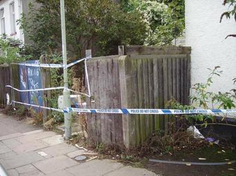 | Keywords: QueensHeadCrimeScene.JPG en Police tape blocking off a crime scene at the back of the derelict Quens Head pub on Edward Road in Bedford Arson was suspected after a fire however the cops decided it was just an accident caused when a squatter started a fire to keep warm own Simon Speed 2010-10-05 52 7 38 98 N 0 28 33 91 W region GB_heading SSE Crime scenes Photos by Simon Speed Taken with Pentax Optio 60 Pubs in Bedford Bedfordshire Caution tapes Cc-zero | ||||