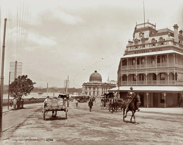 | Keywords: Queensland State Archives 2193 Petrie Bight showing National Hotel and Customs House Brisbane 1898.png en Petrie Bight showing National Hotel and Customs House Brisbane includes river scene roadway horse-drawn vehicles trams telegraph poles rider on horseback 1898 http //www archivessearch qld gov au/Image/DigitalImageDetails aspx ImageId 2193 Preferred citation Queensland State Archives Digital Image ID 2193 ID label 1108376 http //www archivessearch qld gov au/Search/AgencyDetails aspx AgencyID 1993 Lands Department Survey of Lands Branch Photographic Branch en Copyright expired Information field Decade 1890-1899 Information field Place en Brisbane City Information field Keywords en Historic buildings Information field Material Type en Photographic material Information field Type en Image PD-Australia QSA media uploaded by User 99of9 Photographic material from the Queensland State Archives 1898 in Brisbane Customs House Brisbane Hotels and pubs in Queensland Brisbane River Trams in Brisbane Horse-drawn carts in Australia Petrie Bight |
