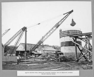 | Keywords: Queensland State Archives 3650 South anchor pier dredging eastern caisson top of western caisson below ground level Brisbane 29 April 1936.png en South anchor pier dredging eastern caisson top of western caisson below ground level Brisbane Story Bridge construction 1936-04-29 http //www archivessearch qld gov au/Image/DigitalImageDetails aspx ImageId 3650 Preferred citation Queensland State Archives Digital Image ID 3650 ID label 1245559 http //www archivessearch qld gov au/Search/AgencyDetails aspx AgencyID 1995 Lands Department Survey Office Cartographic Branch Photographic Section en Copyright expired Information field Decade 1930-1939 Information field Place en Brisbane City Information field Material Type en Photographic material Information field Type en Image PD-Australia QSA media uploaded by User 99of9 Cranes in Australia Story Bridge construction Photographic material from the Queensland State Archives 1936 in Queensland Caisson engineering Bridge supports in Queensland |