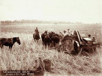| Keywords: Queensland State Archives 5177 Harvester at work Yangan 1899.png en Harvester at work Yangan 1899 http //www archivessearch qld gov au/Image/DigitalImageDetails aspx ImageId 5177 Preferred citation Queensland State Archives Digital Image ID 5177 ID label 1367631 http //www archivessearch qld gov au/Search/AgencyDetails aspx AgencyID 1993 Lands Department Survey of Lands Branch Photographic Branch en Copyright expired Information field Decade 1890-1899 Information field Place en Southern Downs Region Information field Keywords en Agriculture ll Horse teams Information field Material Type en Photographic material Information field Type en Image PD-Australia QSA media uploaded by User 99of9 Photographic material from the Queensland State Archives 1899 in Queensland Yangan Queensland 1899 in agriculture Harvesting machines Agriculture with horses Agriculture in Queensland |