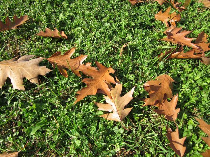 Keywords: quercus rubra nothern red oak champion oak leaves fallen autumn fall season grass meadow green contrast