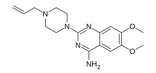 Keywords: Quinazosin.svg Chemical structure of quinazosin Own 12 47 5 January 2014 UTC Ed Edgar181 Quinazolines Piperazines Allyl compounds Alpha blockers