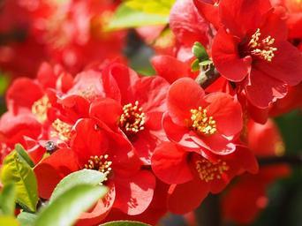 Keywords: quince bokeh flower red plant flowers