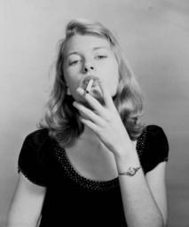 Keywords: florida state library and archives of florida statelibraryandarchivesofflorida models modeling young women youngwomen advertisements ads cigarettes tobacco industry tobaccoindustry lucky strike luckystrike ben stahl benstahl artists joseph janney steinmetz collection josephjanneysteinmetzcollection 1940s portraits smoking blonde blackandwhite monochrome indoor people black and white Local call number: JJS1120 Title: "Cigarette girl" Date: April 5, 1947 Accompanying note: "Model posing for painting by Ben Stahl - 'Lucky Strike' ad." Physical descrip: 1 photonegative - b&w - 5 x 4 in. Series Title: Joseph Janney Steinmetz Collection Repository: State Library and Archives of Florida, 500 S. Bronough St., Tallahassee, FL 32399-0250 USA. Contact: 850.245.6700. Archives@dos.myflorida.com Persistent URL: www.floridamemory.com/items/show/246339 Local call number: JJS1120 Title: "Cigarette girl" Date: April 5, 1947 Accompanying note: "Model posing for painting by Ben Stahl - 'Lucky Strike' ad." Physical descrip: 1 photonegative - b&w - 5 x 4 in. Series Title: Joseph Janney Steinmetz Collection Repository: State Library and Archives of Florida, 500 S. Bronough St., Tallahassee, FL 32399-0250 USA. Contact: 850.245.6700. Archives@dos.myflorida.com Persistent URL: www.floridamemory.com/items/show/246339