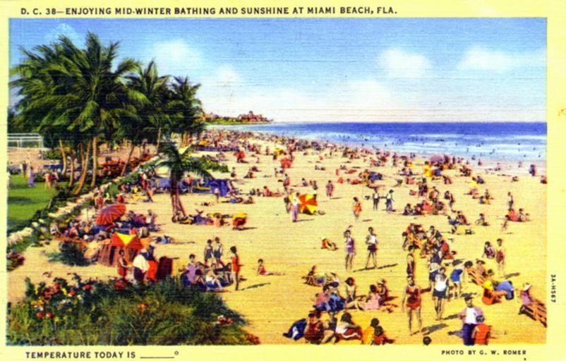 | Keywords: florida state library and archives of florida statelibraryandarchivesofflorida winter bathing beaches sun sand surf palm trees palmtrees postcards postcard collection postcardcollection 1940s g.w. romer gwromer outdoor Persistent URL: floridamemory.com/items/show/160187 Local call number: PC2356 Title: "Enjoying Mid-Winter Bathing and Sunshine at Miami Beach, Fla." Date: Postmarked 1942 Physical descrip: 1 postcard - col. - 9 x 14 cm. Series Title: Postcard Collection Repository: State Library and Archives of Florida 500 S. Bronough St., Tallahassee, FL, 32399-0250 USA, Contact: 850.245.6700, Archives@dos.myflorida.com Persistent URL: floridamemory.com/items/show/160187 Local call number: PC2356 Title: "Enjoying Mid-Winter Bathing and Sunshine at Miami Beach, Fla." Date: Postmarked 1942 Physical descrip: 1 postcard - col. - 9 x 14 cm. Series Title: Postcard Collection Repository: State Library and Archives of Florida 500 S. Bronough St., Tallahassee, FL, 32399-0250 USA, Contact: 850.245.6700, Archives@dos.myflorida.com |