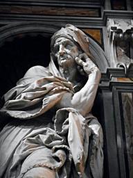 | Keywords: jeremias prophet jeremiasprophet cosimo fanzago cosimofanzago naples italy people sculpture statue È stata realizzata nell'arco temporale 1637-1655 da Cosimo Fanzago (Clusone 1591-Napoli 1678) e si trova nella chiesa del Gesù Nuovo a Napoli. La statua raffigura il profeta Geremia e il Fanzago rivela un'evidente suggestione da Michelangelo. Lo sguardo di Geremia è corrucciato e minaccioso come quello del "Mosè", mentre la torsione del busto verso sinistra e il braccio che tocca la testa ricordano i profeti della Sistina. È stata realizzata nell'arco temporale 1637-1655 da Cosimo Fanzago (Clusone 1591-Napoli 1678) e si trova nella chiesa del Gesù Nuovo a Napoli. La statua raffigura il profeta Geremia e il Fanzago rivela un'evidente suggestione da Michelangelo. Lo sguardo di Geremia è corrucciato e minaccioso come quello del "Mosè", mentre la torsione del busto verso sinistra e il braccio che tocca la testa ricordano i profeti della Sistina. |