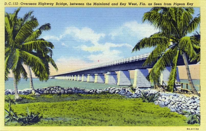 Keywords: florida state archives of florida statearchivesofflorida overseas highway overseashighway bridges florida keys floridakeys pigeon key pigeonkey ocean water us 1 us1 us highway 1 ushighway1 postcards postcard collection postcardcollection 1920s palm trees palmtrees concrete bridges concretebridges infrastructure outdoor drawing photo border Persistent URL: floridamemory.com/items/show/159400 Local call number: PC1646 Title: "Overseas Highway Bridge, between the Mainland and Key West, as Seen from Pigeon Key" Date: ca. 1920 Physical descrip: 1 postcard - col. - 9 x 14 in. Series Title: Postcard Collection Repository: State Library and Archives of Florida 500 S. Bronough St., Tallahassee, FL, 32399-0250 USA, Contact: 850.245.6700, Archives@dos.myflorida.com Persistent URL: floridamemory.com/items/show/159400 Local call number: PC1646 Title: "Overseas Highway Bridge, between the Mainland and Key West, as Seen from Pigeon Key" Date: ca. 1920 Physical descrip: 1 postcard - col. - 9 x 14 in. Series Title: Postcard Collection Repository: State Library and Archives of Florida 500 S. Bronough St., Tallahassee, FL, 32399-0250 USA, Contact: 850.245.6700, Archives@dos.myflorida.com |