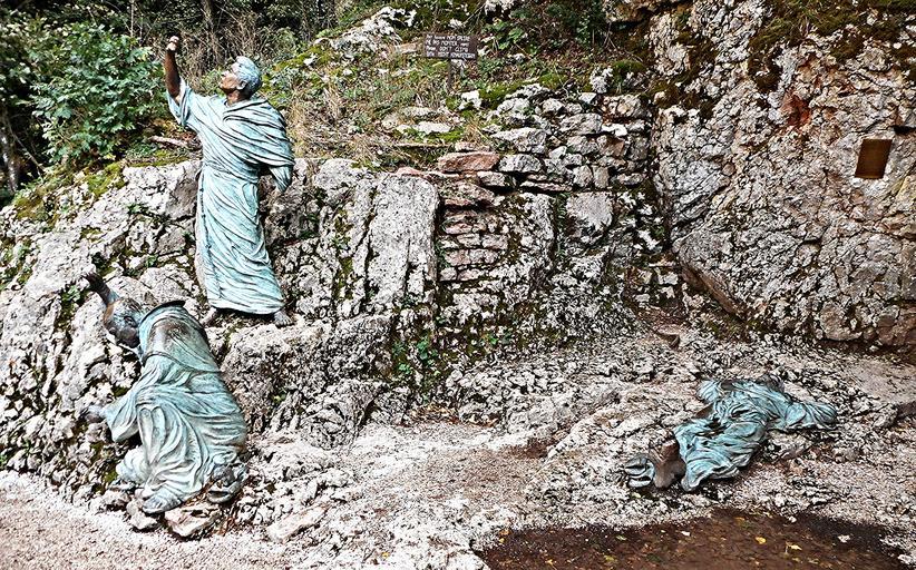 "Saint_Francis,_Friar_Leone_and_Friar_Ginepro_admire_the_sky"_-_modern_bronze_statues_by_Fiorenzo_Bacci_-_"Eremo_delle_Carceri"_at_Assisi.jpg (4888x3046)