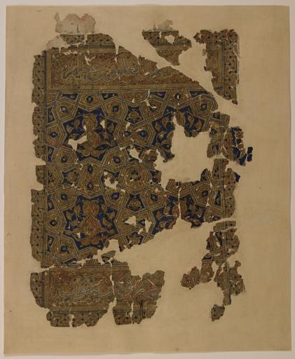 | Keywords: Qur'an Carpet Page WDL6798.png Artwork ru Ков овая ст аница ко ана fr Page-tapis d'un coran en Qur'an Carpet Page zh 古兰经 毯页 pt Página-tapete do Alcorão ar صفحة افتتاحية القرآن ru а данном листе п едставлена начальная ков овая ст аница ко ана Это пе вый из пяти листов входящих в аз озненную укопись ко ана из коллекции Библиотеки Конг есса Вместе с д угим листом данный лист об азует двухст аничный иллюмини ованный ф онтиспис п ек асного хотя и пов ежденного ко ана мамлюков 14-го века Лист соде жит стихи 76 78 из 56-ой главы ко ана <em> al-Waqi'ah </em> Воск есение кото ые заключены в ве хней и нижней п ямоугольных вставках двухст аничного иллюмини ованного ф онтисписа а следующем листе соде жится п одолжение стихи 56 79 80 В этих стихах ко ан п едставлен как благословенная д агоценная книга ниспосланная Аллахом кото ой должны касаться только физически и духовно чистые люди Эти пять стихов целиком или частично п исутствуют на деко ативных ков овых ст аницах п едназначенных быть начальными ст аницами ко ана или азделять его части Они напоминают читателю о священной сути ко ана и в то же в емя являются изысканным визуальным элементом позволяющим отвлечься от собственно текста Деко ативные о наменты и цветовая гамма этой ков овой ст аницы типичны для ко анов мамлюков изготовленных в Египте в 14-ом веке Цент альная часть п едставляет собой вытянутый шестиугольник об азующий че едующиеся золотые и синие многоугольники и четы е восьмиугольные звезды асположенные в каждом углу п ямоугольной амки Линии об азующие эти фо мы выполнены белыми че нилами как и надписи В многоугольниках че едуются золотые узо ы на синем фоне и синие узо ы на золотом фоне а в восьмиугольные звезды вписаны золотые о наменты в фо ме пальмовых листьев и луковиц на синем фоне Поле вок уг к омки заполнено пе еплетающимися золотыми зигзагами <br>А абская каллиг афия; Иллюмини ование укописей; Исламская каллиг афия; Исламские укописи; Ко ан fr Ce feuillet contient une page-tapis d'introduction d'un coran Il s'agit du premier des cinq feuillets appartenant à un manuscrit du coran dispersé des collections de la Bibliothèque du Congrès Accompagné d'un autre feuillet ce feuillet constitue le frontispice double-page enluminé d'un coran mamelouk du XIV<sup>e</sup> magnifique bien qu'endommagé Ce feuillet comprend les versets 76 à 78 du 56<sup>e</sup> chapitre du Coran <em>al-Waqi'ah</em> L'inéluctable Ceux-ci figurent dans les panneaux rectangulaires supérieurs et inférieurs du frontispice double-page enluminé Le texte continue sur le feuillet suivant avec les versets 56 79 80 Ces versets présentent le coran comme un livre béni et sacré révélé par Dieu qui ne doit être touché que par ceux qui sont purs à la fois physiquement et psychologiquement L'ensemble ou des parties de ces cinq versets apparaissent sur des pages-tapis ornementales destinées à introduire le coran ou à en séparer plusieurs parties Ils rappellent au lecteur le caractère sacré du coran tout en offrant une rupture visuelle artistique avec le texte lui-même Les motifs décoratifs et la palette de cette page-tapis sont caractéristiques des corans mamelouks du XIV<sup>e</sup> siècle produits en Égypte La pièce centrale est formée d'un hexagone prolongé pour former des polygones alternant l'or et le bleu et de quatre étoiles à huit branches dans chaque coin du cadre rectangulaire Les lignes créant les formes tout comme les inscriptions sont exécutées à l'encre blanche Les polygones alternent des motifs dorés sur fond bleu et un motif bleu sur fond doré tandis que les étoiles à huit branches contiennent des palmettes et des motifs dorés en forme de bulbe sur fond bleu La bordure autour du panneau est formée d'un entrelac de zigzags dorés <br>Calligraphie arabe; Enluminures; Calligraphie islamique; Manuscrits islamiques; Coran en This folio contains an opening carpet page of a Qur'an It is the first of five folios belonging to a dispersed Qur'an manuscript in the collections of the Library of Congress Together with another folio this folio constitutes the double-page illuminated frontispiece of a beautiful albeit damaged 14th-century Mamluk Qur'an This folio contains verses 76 78 of the 56th chapter of the Qur'an <em>al-Waqi'ah</em> The inevitable contained in the top and bottom rectangular panels of the double-page illuminated frontispiece The next folio continues the inscription with verses 56 79 80 The verses introduce the Qur'an as a blessed and precious book revealed by God which 