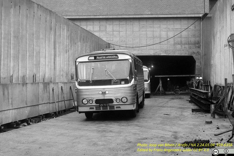 | Keywords: vb-75-12 vb7512 mk cn maarse & kroon maarsekroon centraal nederl and centraalnederland leyland royal tiger cub lrtc hainje Amsterdam 04-10-1966. The first ride through the newly built IJ-tunnel. First coach in view is Maarse & Kroon VB-75-12 (301), Leyland Royal Tiger Cub LRTC1/1 / Hainje new in May 1963. The coach was scrapped in December 1975, after having spent the last 2½ years with Centraal Nederland. De eerste rit door de pas nieuwe IJ-tunnel met voorop Maarse & Kroon VB-75-12 (301), een Leyland Royal Tiger Cub LRTC1/1 / Hainje nieiw in mei 1963. De bus werd gesloopt in december 1975 na nog 2½ jaren dienst gedaan te hebben bij Centraal Nederland. Amsterdam 04-10-1966. The first ride through the newly built IJ-tunnel. First coach in view is Maarse & Kroon VB-75-12 (301), Leyland Royal Tiger Cub LRTC1/1 / Hainje new in May 1963. The coach was scrapped in December 1975, after having spent the last 2½ years with Centraal Nederland. De eerste rit door de pas nieuwe IJ-tunnel met voorop Maarse & Kroon VB-75-12 (301), een Leyland Royal Tiger Cub LRTC1/1 / Hainje nieiw in mei 1963. De bus werd gesloopt in december 1975 na nog 2½ jaren dienst gedaan te hebben bij Centraal Nederland. |
