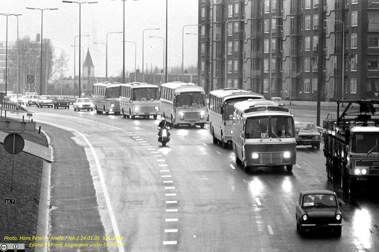 Keywords: xb-63-97 xb6397 daf mb200 bova benelux smit van rooijen vanrooijen outdoor Amsterdam 04-04-1973. Coaches with AZ67 supporters cross Amsterdam on their way to an unknown match. The forst coach is XB-63-97, a DAF MB200DOL605 / BOVA of C. de Jong which was new in May 1964. The 2nd one is a Smit; the 3rd a DAF / Van Rooijen; the 4th a BOVA Benelux integral and at the end another DAF / BOVA. Amsterdam 04-04-1973. Coaches with AZ67 supporters cross Amsterdam on their way to an unknown match. The forst coach is XB-63-97, a DAF MB200DOL605 / BOVA of C. de Jong which was new in May 1964. The 2nd one is a Smit; the 3rd a DAF / Van Rooijen; the 4th a BOVA Benelux integral and at the end another DAF / BOVA. |