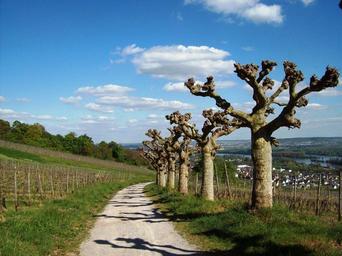 Keywords: rüdesheim am rhein plane trees vineyards spring trees blue nature sky landscape sun rest field hill romantic clouds idyll