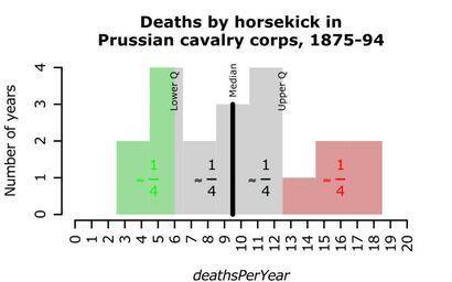 MAKE A MEME View Large Image R-horsekick totals-histogram+quartiles.svg en Histogram example with discrete data with median line and quartiles marked by colour Data von Bortkiewicz's famous dataset of deaths by horse kick in Prussian cavalry corps Own HYanWong ...