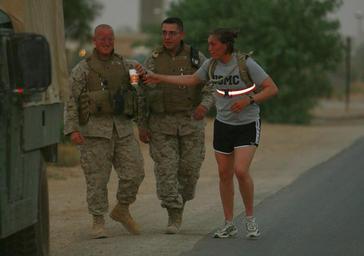 | Keywords: Race DVIDS23040.jpg en 1st Lt Evie L Foist stops along the 14-mile course for a cup of water Several Marines with Marine Wing Support Squadron 274 offered their morning to support the Marines running the half marathon Foist is the construction officer-in-charge for the combat engineers MWSS-274 Marine Wing Support Group 37 Reinforced 3rd Marine Aircraft Wing 2006-06-03 Gunnery Sgt Chad McMeen https //www dvidshub net/image/23040 23040 2006-06-09 13 07 AL ASAD IQ PD-USGov Marine Wing Support Squadron 274 Images from DoD uploaded by Fæ |