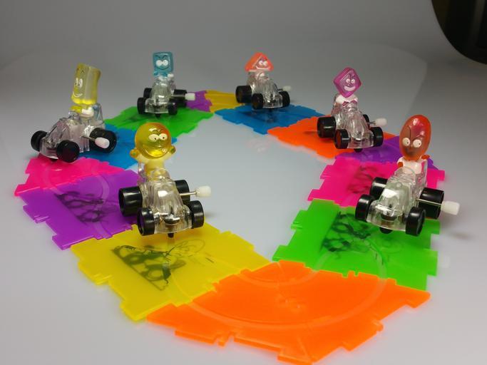 Keywords: racecourse racing car figures colorful children funny