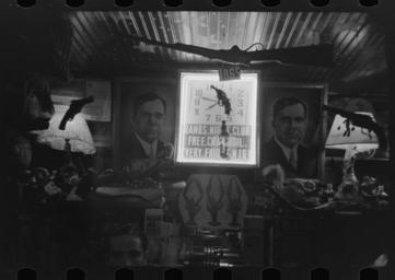| Keywords: RacelandBarClockEveryManAKing.tif Interior of bar in Raceland Louisiana Area behind the cash-register has illuminated electric clock advertising Friday night crab boil two portraits of Huey P Long and various firearms Photo by Russell Lee for Farm Security Administration/WPA via http //hdl loc gov/loc pnp/fsa 8a23710 1938-09 Creator Russell Lee PD-USGov Cropped and adjusted jpg 100px 1938 in Louisiana Interiors of bars in Louisiana Bars in Raceland Louisiana Huey P Long Clocks in Louisiana Russell Lee Black and white photographs of Louisiana |