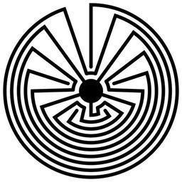 | Keywords: Radial-labyrinth-fivefold.svg A five-fold labyrinth drawn with concentric circular arcs and radial lines similar to certain Native American basket patterns For a radial version of the ancient Cretan type of labyrinth see File Radial-labyrinth svg Self-made graphic converted from a version of the following vector PostScript source code <pre> 306 396 translate 20 21 div dup scale/ang 18 mul 90 add def /rds 5 add 25 mul def/plr rds dup 3 2 roll ang dup 3 1 roll cos mul 3 1 roll sin mul moveto def/q ang exch ang exch 3 2 roll rds 0 0 3 2 roll 5 3 roll def/crcp q arc def/crcn q arcn def 0 0 43 75 0 360 arc fill 12 5 setlinewidth 1 setlinecap 1 setlinejoin 20 3 plr 12 20 1 crcn 2 1 20 8 19 2 crcn 11 19 2 crcn 0 0 lineto 16 3 plr 8 16 5 crcn 2 1 4 8 3 2 crcn 10 3 18 crcp 0 0 lineto 4 3 plr 9 4 17 crcp 2 1 16 8 15 2 crcn 7 15 6 crcn 0 0 lineto 12 3 plr 4 12 9 crcn 2 1 8 8 7 2 crcn 6 7 14 crcp 0 0 lineto 8 3 plr 5 8 13 crcp 2 1 12 8 11 2 crcn 3 11 10 crcn 0 0 lineto stroke showpage EOF</pre> 2009 AnonMoos Round labyrinths Round graphic ornaments Images with PostScript source code Radial patterns |